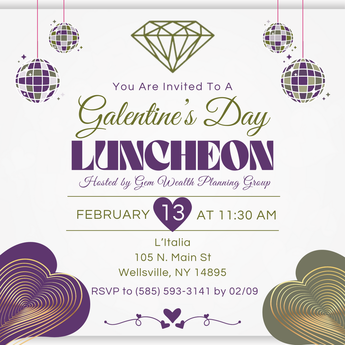 Please join us as we celebrate 'Galentine's Day' on Wednesday February 13th, 2024. This event will take place at L'Italia in Wellsville, NY at 11:30am. Lunch will be provided. Lunch will include; soup, salad, sandwiches and sweet treats! Games and prizes for those who attend. Please RSVP to Jackie or Molly by 02/09/2024.